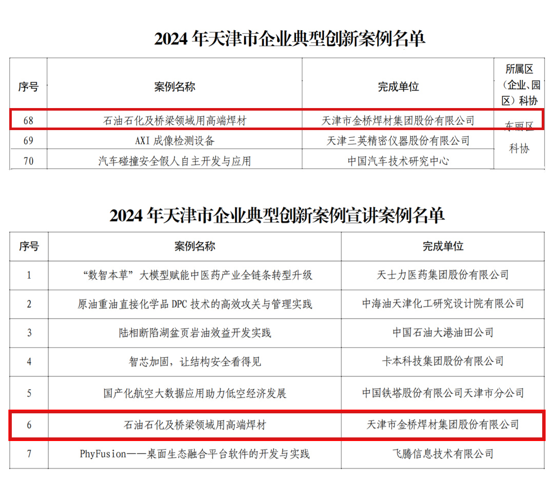 近日,天津市科协《2024年天津市企业典型创新案例入选名单》揭晓,集团石油石化及桥梁领域用高端糖心vlog 研发入选天津市企业典型创新案例十大宣讲案例,在全市进行宣讲汇报。