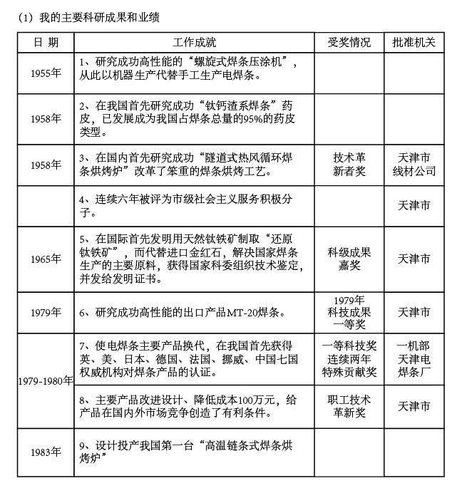 (2)我是1983年-1987年六届全国政协委员,1988年-1992年七届全国政协委员,1993年-1997年八届全国政协委员。三届政协委员都是科技界。因我有很多创造发明和论文,不仅利于天津市,对国家焊接材料事业也是有一定贡献。